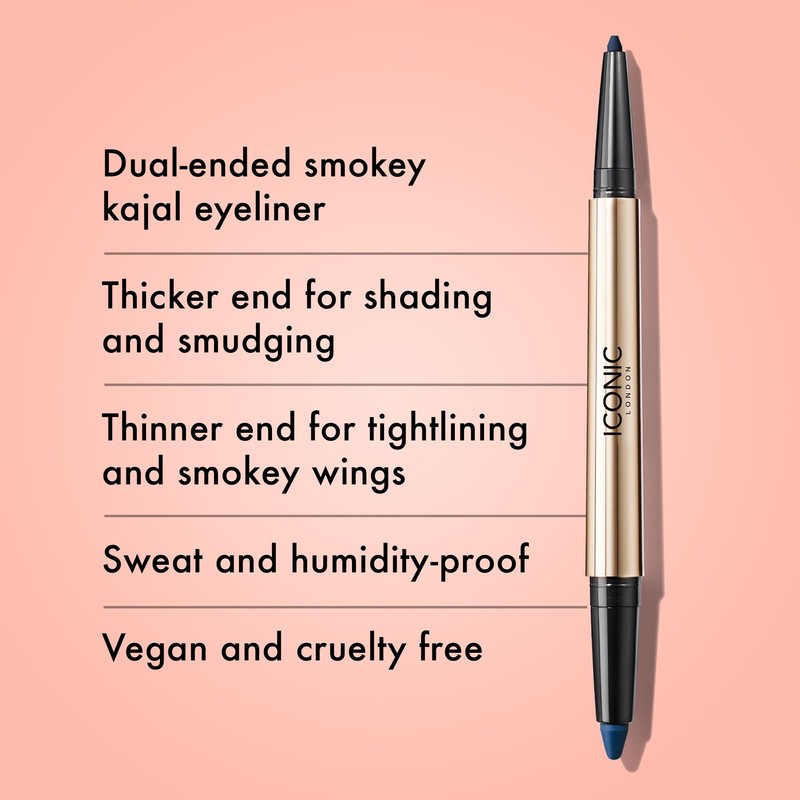ICONIC LONDON Smokey Eye Duo Eyeliner | Creamy, Easy to Blend 2-in-1 Eyeliner Crayon, Water Resistant, Cruelty Free, Vegan Makeup (Electric Blue) 0.027 oz
