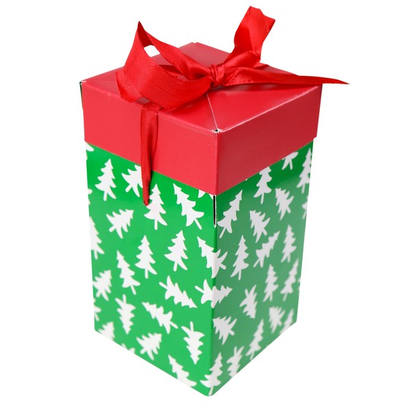 - 6-pack of Christmas gift boxes with a beautiful design, including classic red and green colors accented with white Christmas trees