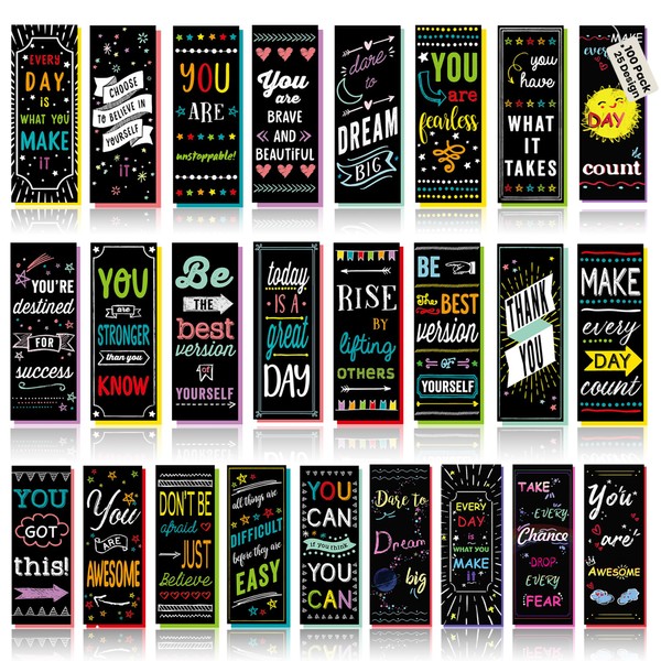 - Each bookmark features a bright, inspiring phrase such as "Today is a great day", "Dare to dream big", "You have what it takes", and many more!