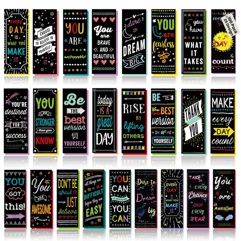 Iconikal 100-Count Inspirational, Motivational, Gratitude, Appreciation, Kindness & Encouragement Sayings Bookmarks