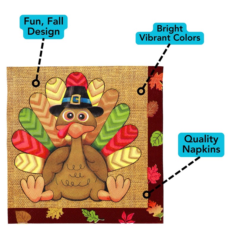Iconikal Paper Disposable Party Napkins, Dinner Size, Thanksgiving Silly Turkey, 48-Count
