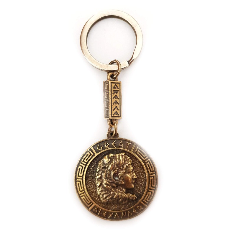 - Two sided keyring features Alexander the Great on one side and the Sun of Vergina on the second side.