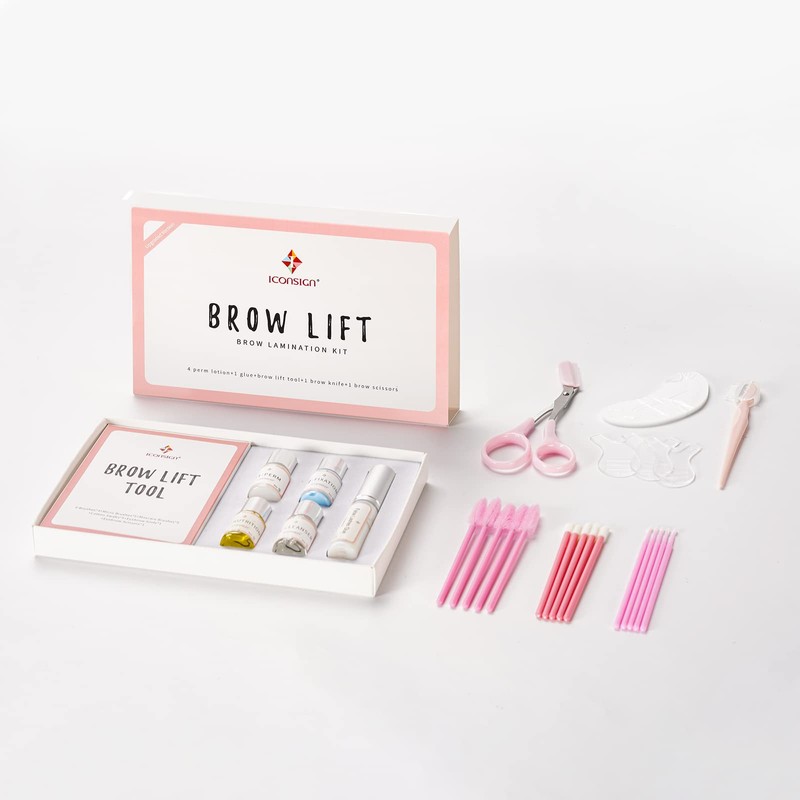 - ICONSIGN Brow Lamination Kit - Includes 4 Eyebrow Lamination lotions,1 Eyebrow Glue, 3 Y-Brushes, 5 Micro Brushes, 5 Mascare Brushes, 5 Cotton Swabs, 1 Eyebrow Knife, 1 Eyebrow Scissors.