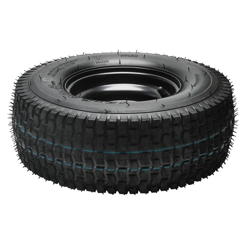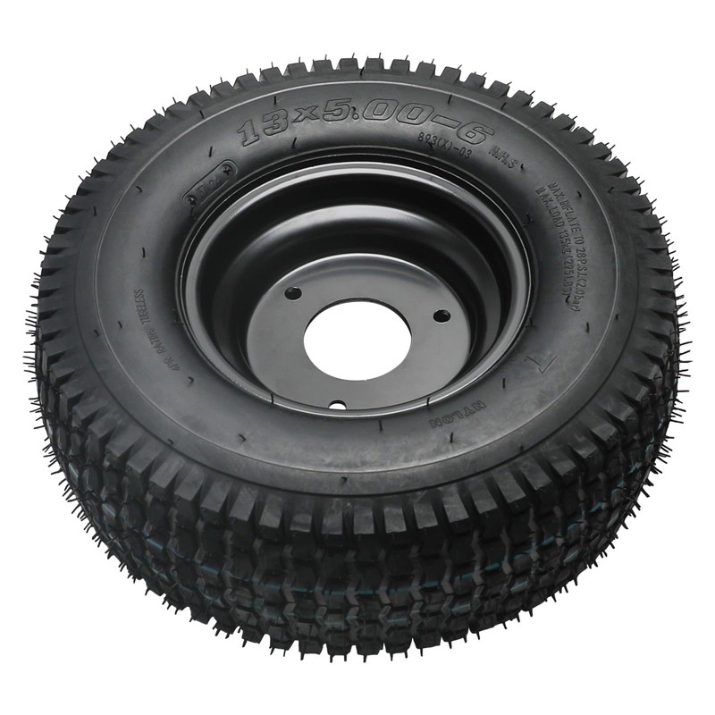 Upgrade your equipment with this 6-inch 13x5.00-6 Tubeless Tire and Rim Set, designed for durability and reliability. Featuring a 4-ply heavy-duty construction, this tire ensures enhanced strength, puncture resistance, and long-lasting performance. With a high load capacity of 135kg (295lbs) at 28psi, it’s perfect for riding lawn mowers, yard tractors, ATVs, go-karts, mini bikes, hand trucks, and buggies. The 3-stud iron rim with a 78mm (3.07") mounting bolt spacing ensures a secure fit for a variety of applications. Measuring 320mm (12.6") in outer diameter, this wheel offers smooth and stable performance on different terrains. Whether you're replacing old wheels or upgrading your vehicle, this versatile tire and rim combo is a reliable choice for heavy-duty use.