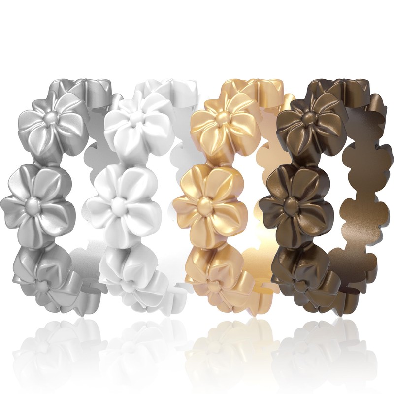 icooci 7/4 Packs Silicone Rings for Women – Soft and Pretty. Comfortable, Breathable, Stackable Rings. Lightweight Rubber Womens Engagement Ring & Wedding Band. Lucky Flower Collection,Size 09