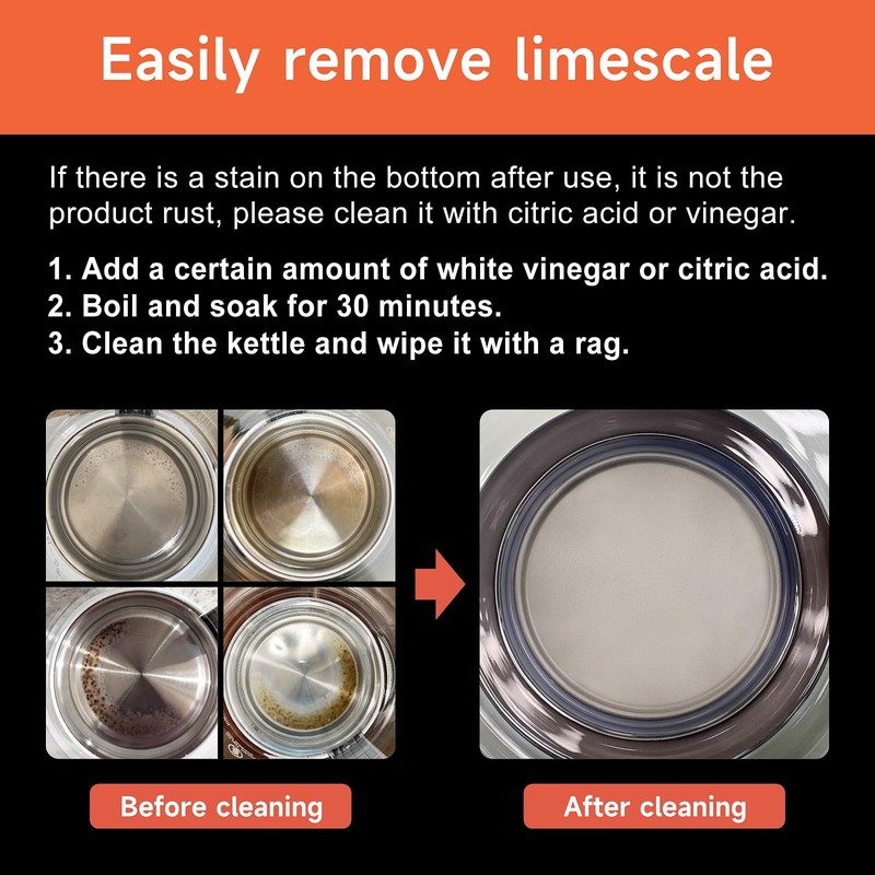 - 【User-friendly Design】Easy-pour spout comes with a mesh filter of stainless steel lid, preventing scale deposits passing into your drink. Cover easily opens lid for fast filling. Cool-to-touch handle provide extra safety. 360 degree cordless base for added convenient.
