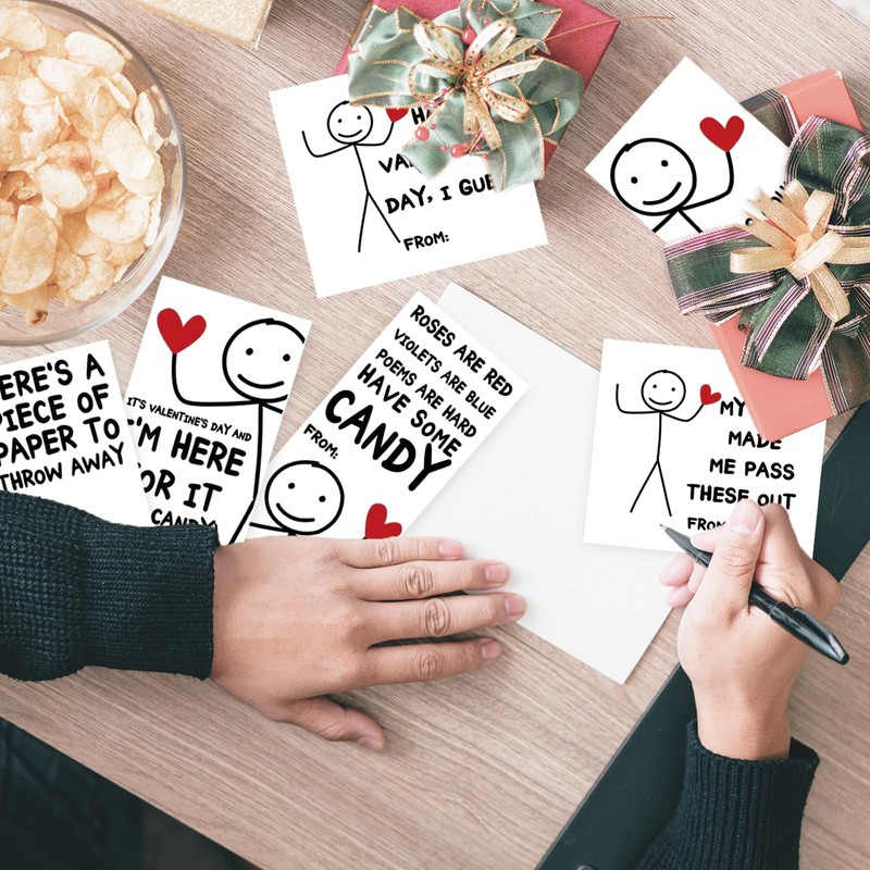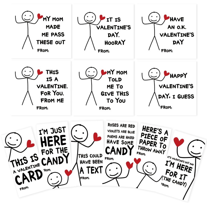 ICOOLYI ICOOLYI Funny Kids Valentines Day Cards, Humorous Stick Figure Designs, DIY Cut-Outs with Blank Back for Messages C Perfect for School Exchanges, Parties, and Friends