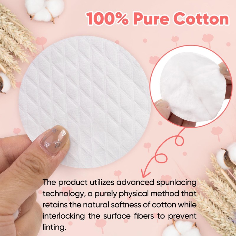 - Unique Design: The round cotton pads utilize advanced spunlacing technology, a purely physical method that retains the natural softness of cotton while interlocking the surface fibers to prevent linting, to ensure hypoallergenic and chemical-free