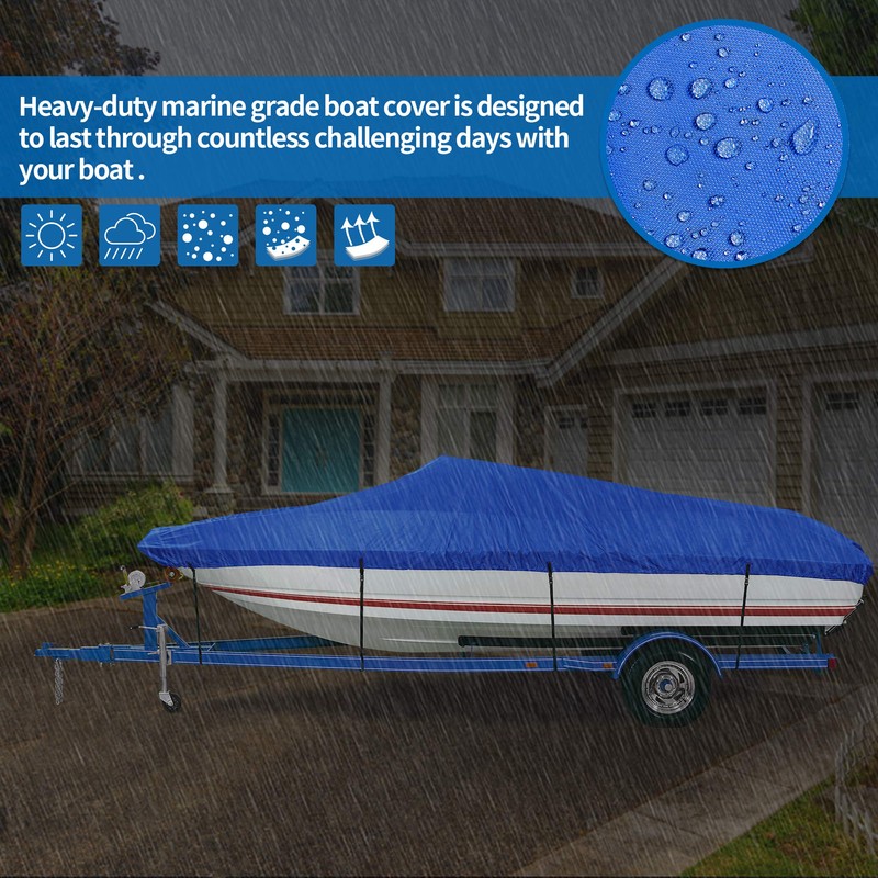 iCOVER Trailerable Boat Cover, Heavy Duty Waterproof UV Resistant Marine Grade Polyester Fits V-Hull,TRI-Hull,Pro-Style,Fishing Boat,Runabout,Bass Boat