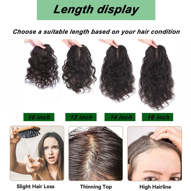 • 100% Real Human Hair Toppe:The hair toppers for women can solve the problems of women's slight hair loss,thinning hair,high hairline,wide hair seam,and gray hair.It can also help modify the face shape and increase hair volume.It is very suitable for people in the early or middle stage of hair loss.