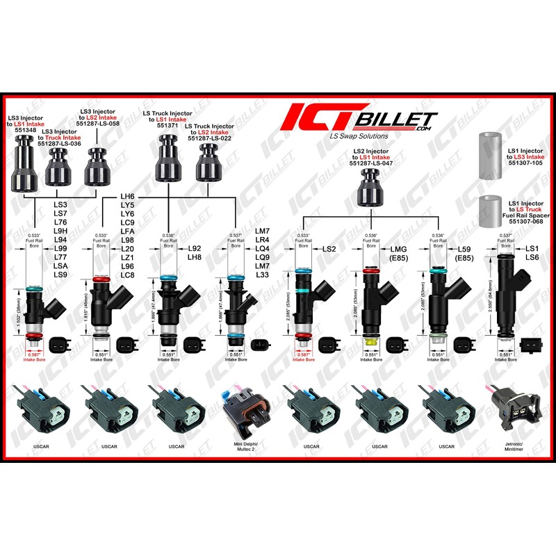 - Compatible with: Mini-Delphi, Multec 2 style injectors, commonly found on LS Gen 3 truck engines