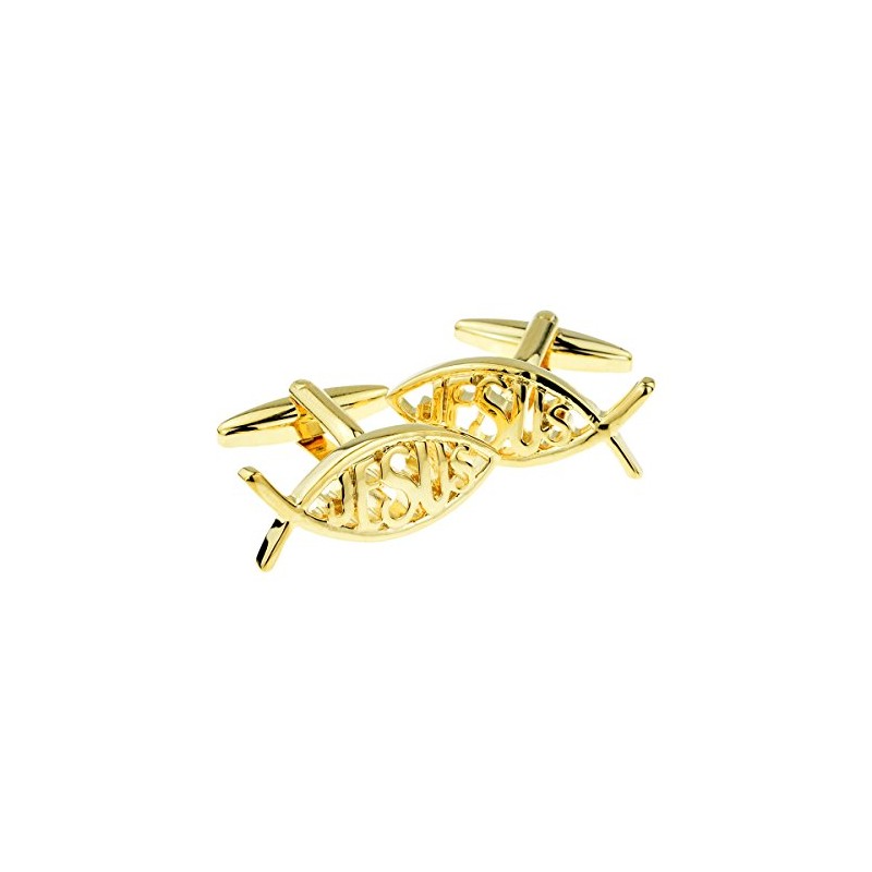 Icthus Jesus Cut Out Cufflinks Gold Plated (X2AJ155)