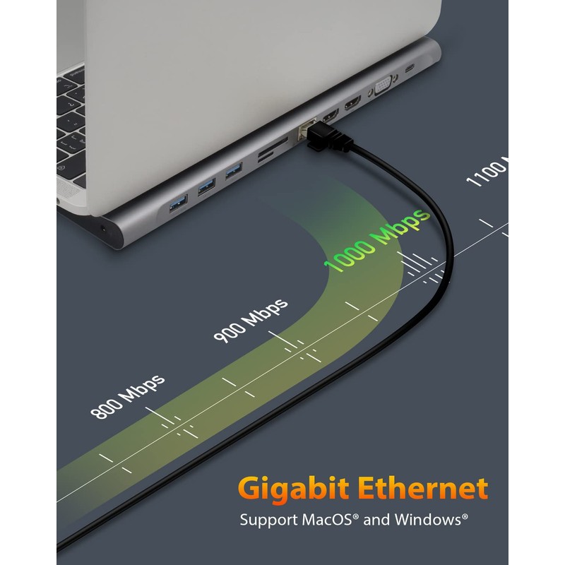 ICY BOX USB-C Docking Station (11-in-1) Triple Monitor 2 HDMI and 1 VGA , Laptop Docking Station with Dual HDMI + VGA (6 USB Ports, Gigabit Ethernet, DisplayLink), IB-DK2106-C
