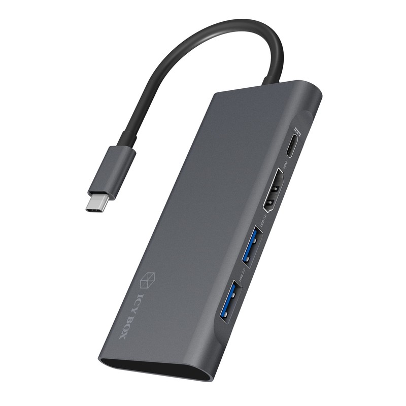 - ICY BOX USB-C Docking Station (4-in-1) with HDMI (4k 60Hz), 3x USB 3.0 HUB, 60W Power Delivery, Aluminium, Grey for Laptop, MacBook, iPad Pro or Android Tablet/Smartphone