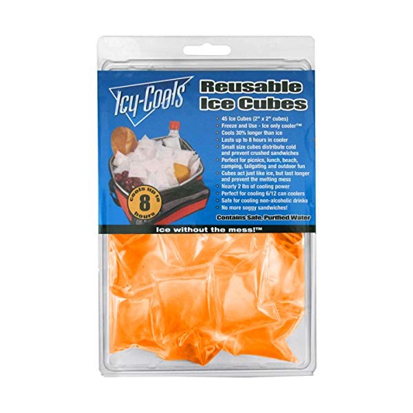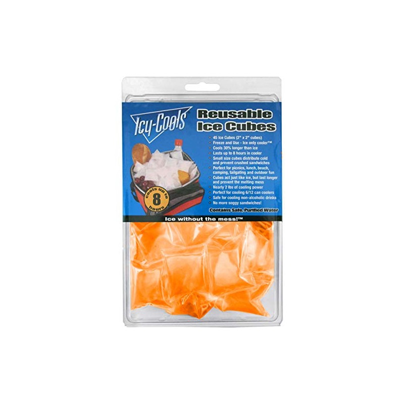 ICY‑COOLS Reusable Ice Cubes for Drinks, Coolers, and Lunch Boxes –135 Total (3 Packs of 45) Mess-Free, Non-Melting Alternative to Ice Cube Trays for Freezer, Orange