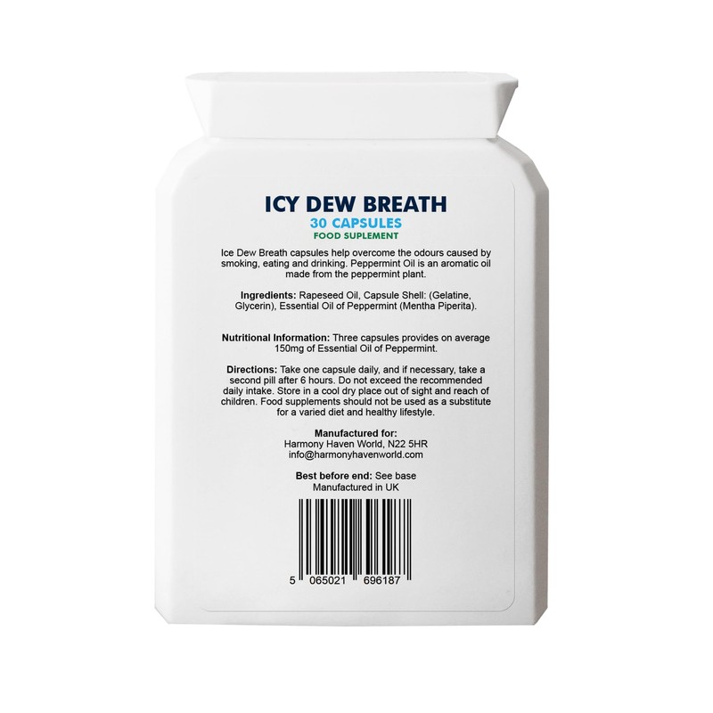 Experience a burst of cool, refreshing confidence with Icy Dew Breath Freshening Capsules. Each capsule is specially formulated to leave your mouth feeling fresh and clean, helping you stay ready for conversations, meetings, or special moments throughout the day. Help stop and prevent bad breath from developing. The unique formulation provides 24 hour double action protection against bad breath