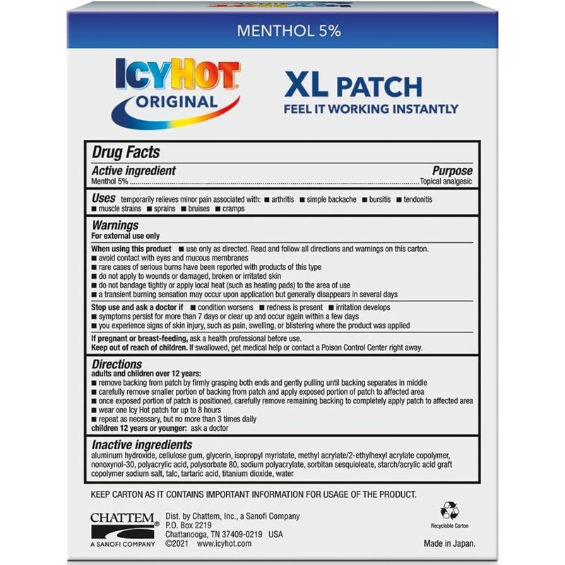ICY HOT Medicated Patches Extra Strength Extra Large (Back) 3 Each (Pack of 10)