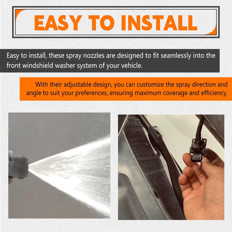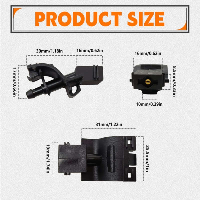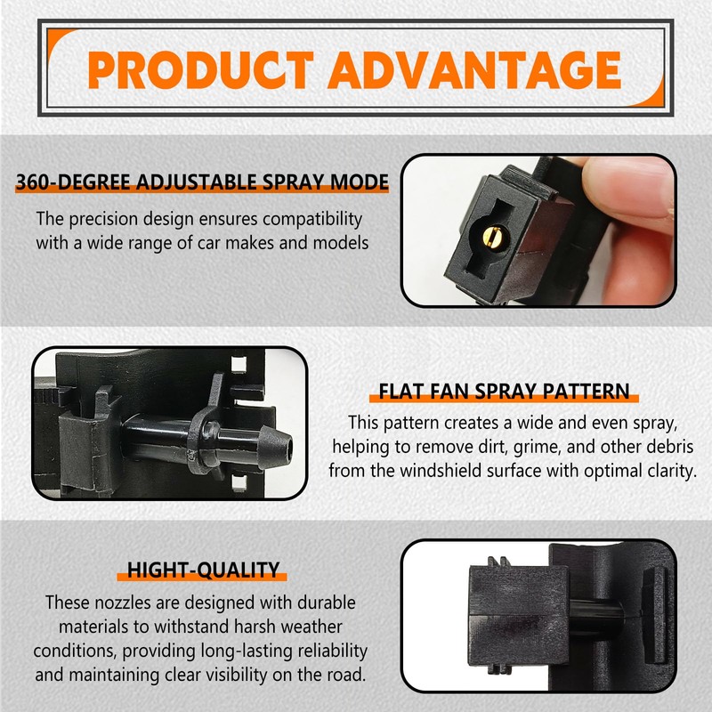 - High Quality: Our front windshield nozzle is made of high quality plastic with strong structure, light weight, perfect for replacing old wiper nozzles, which can help you effectively extend the life of your wipers