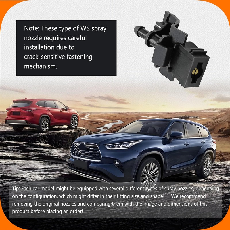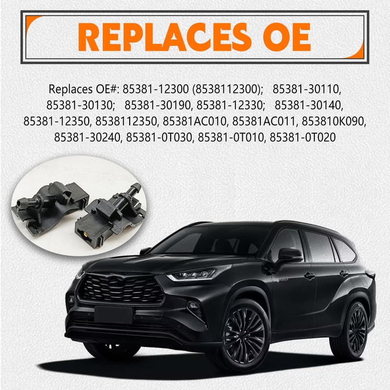 - Compatiable Vehicles: Windshield Washer Nozzles compatible with Toyota Highlander 2007-2023, Corolla 2006-2023, Tundra 2007-2023, Camry 2007-2023, 4Runner 2010-2023, RAV4 2006-2023, Prius 2010-2015, Matrix 2008-2014, Crown 2015-2017, Sequoia 2008-2020