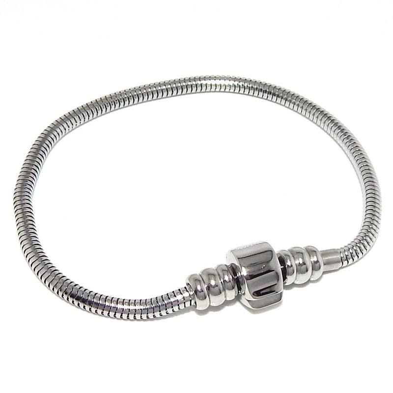 ICYROSE the Forever Bracelet Stainless Steel Starter Charm Bracelet Barrel Snap Clasp Fits European Style Beads (7.5 inches)