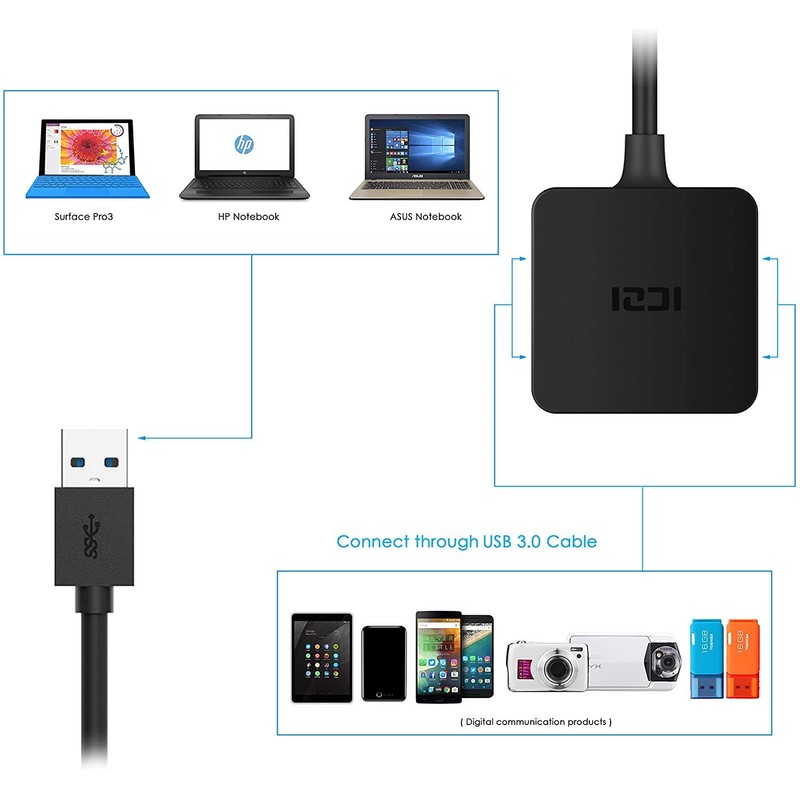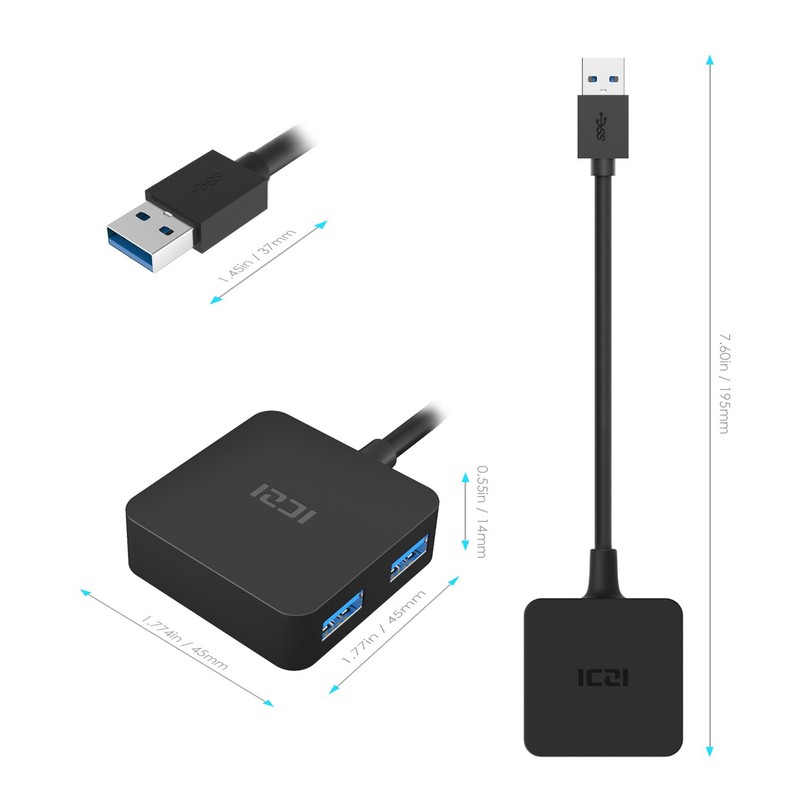 - What you get: 1 x ICZI nickel-plated USB 3.0 to 4-port USB 3.0 port hub. -