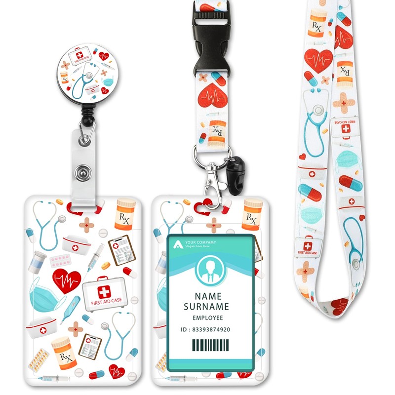 - The lanyard set includes - a Detachable flower neck lanyard, a Stretchable Badge Holders Reels, and an id badge holder with a printed pattern.