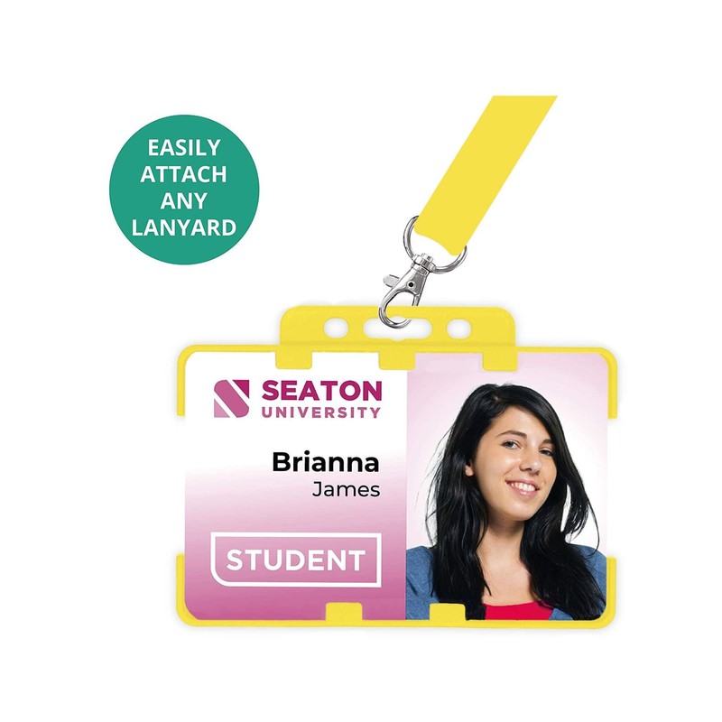 ID Card It 5 x Double Sided ID Badge Card Pass Holders for Credit, Debit Card, Bus Pass, Security Office Key, Lanyard Neck Straps, Retractable Keyring Badge reels (Yellow)