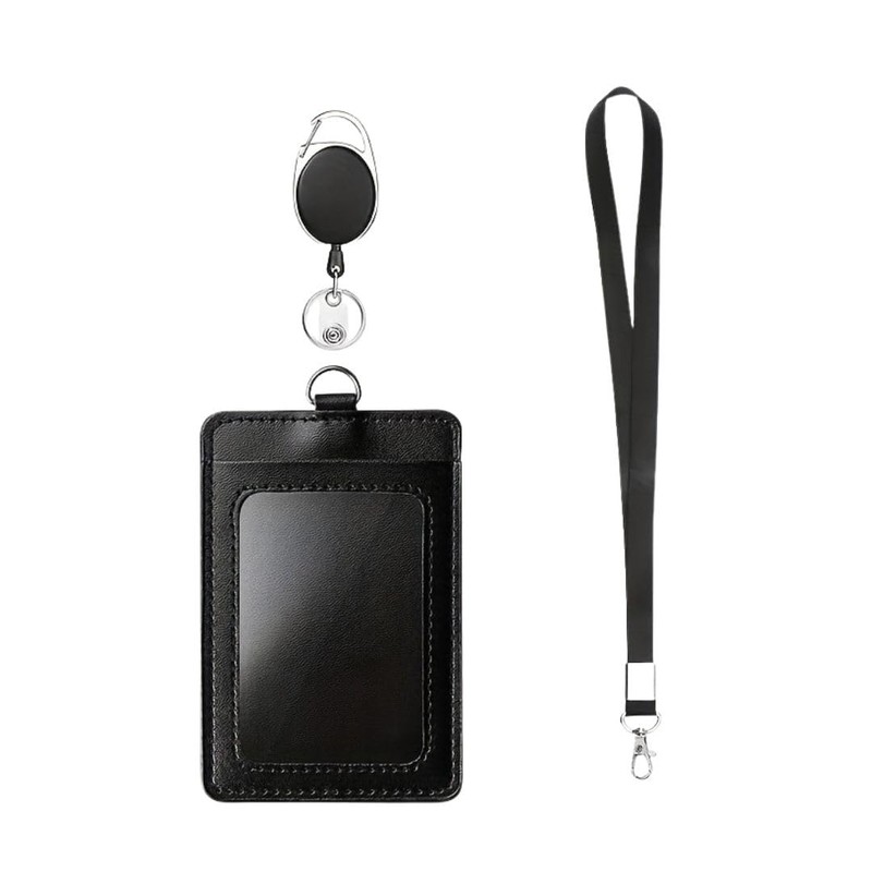 IDカードホルダー, ストラップ・クリップ付き, 社員証・名札・パスケース,本体PU素材,簡易包装 (縦型ブラック)