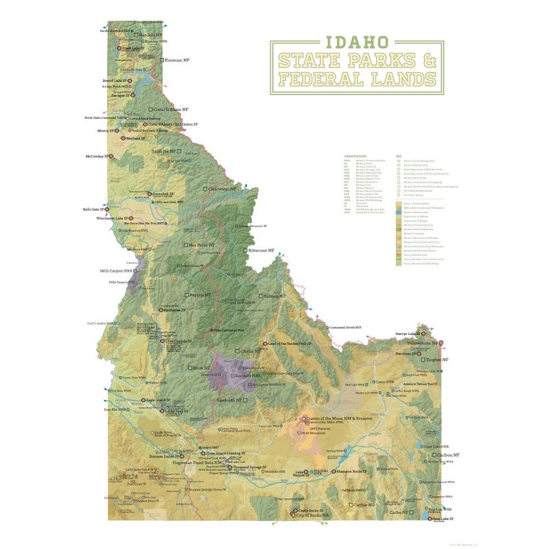 Idaho State Parks & Federal Lands Map 18x24 Poster (Sage & White)