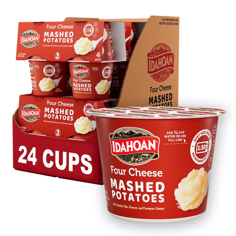 Idahoan Four Cheese Instant Mashed Potatoes 1.5 oz Cup, (24 count)