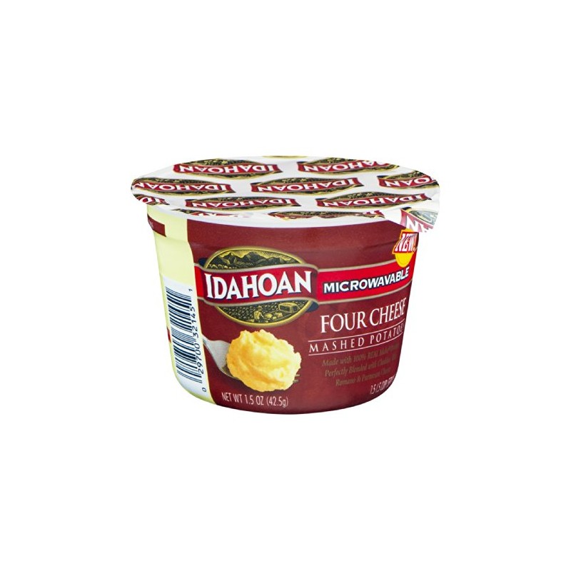 Idahoan four cheese mashed potatoes made with 100% real Idaho potatoes.