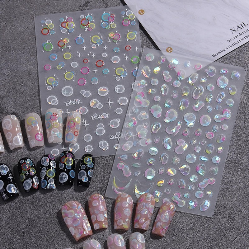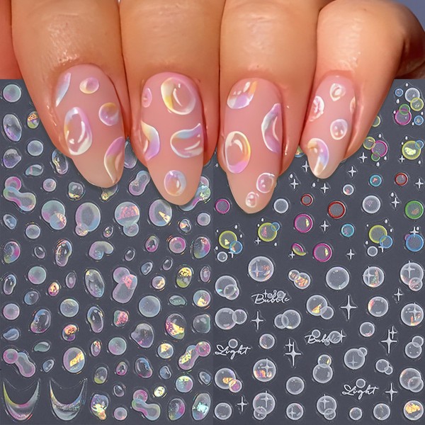 IDDFEVE Summer Bubble Nail Art Stickers - Holographic Laser Bubble Design Sel...