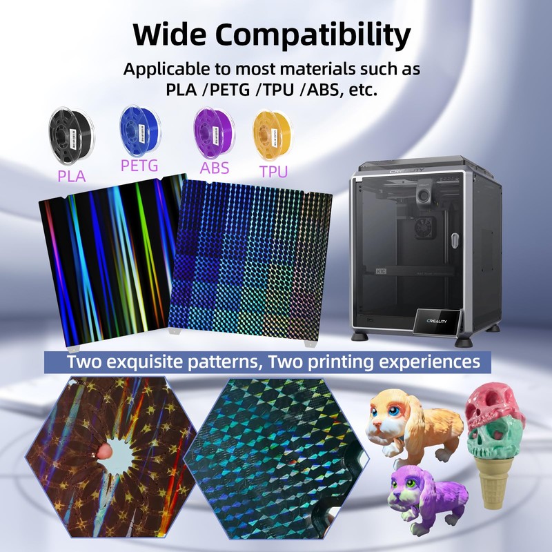 • Compatible 3D printer: the size of the double-sided textured H1H plate is 235 x 235 with screw holes, which perfectly fit Creality K1/Creality K1C/for Creality K1 SE/Ender 3/Ender 3 V2/Ender 3 Pro/ Ender 5/ Ender 5 Pro/Ender 3 Neo/ Ender 3 V2 Neo/Ender 3 S1/Ender 3 S1 Pro/Ender 5 S1/Ender 3 V3 SE/KE