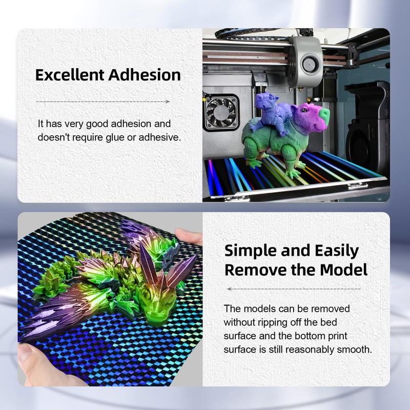• Excellent adhesion: print shapes directly on the texture surface of the H1H printing plate. No tape, no more glue, let go of your pressure anxiety.
