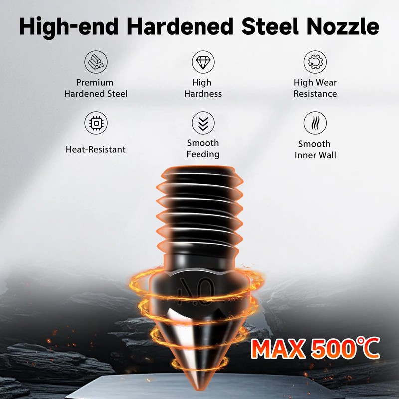 - [High Precision Processing] This Hardened Steel Nozzle is Made of Chrome Zirconium Copper, which has Extraordinary Hardness and can Better Resist Wear.