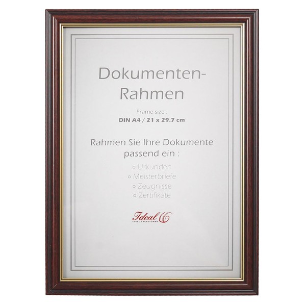 Ideal Document Picture Frame in Mahogany 21 x 29.7 DIN A4 Certificate Picture Photo Frame