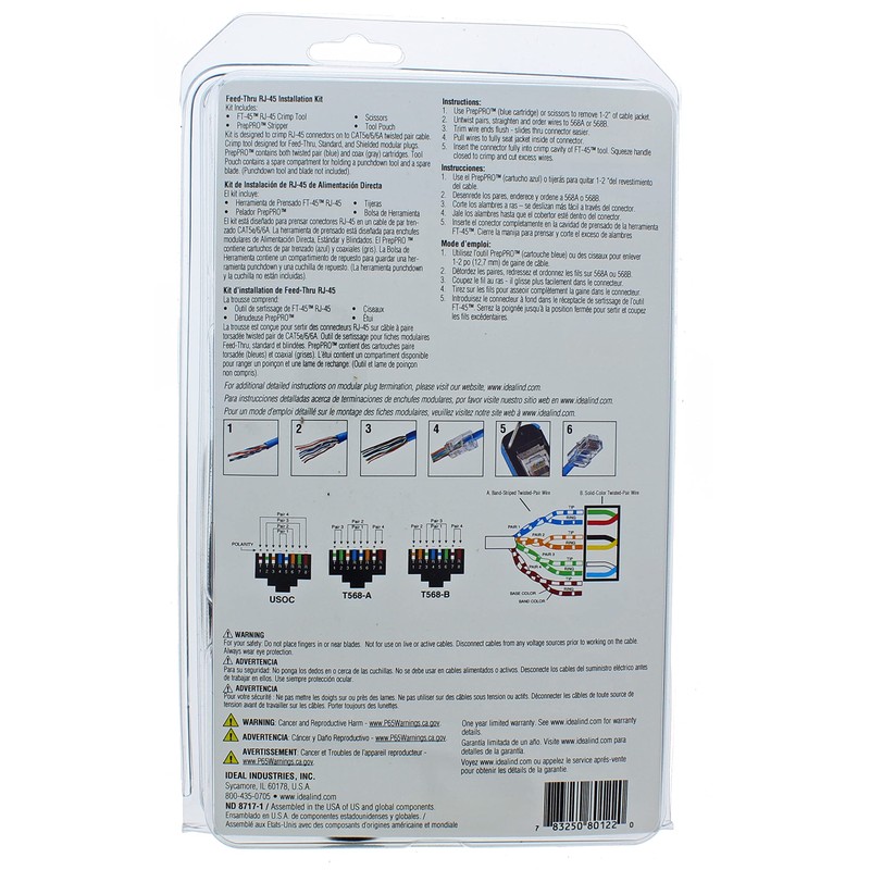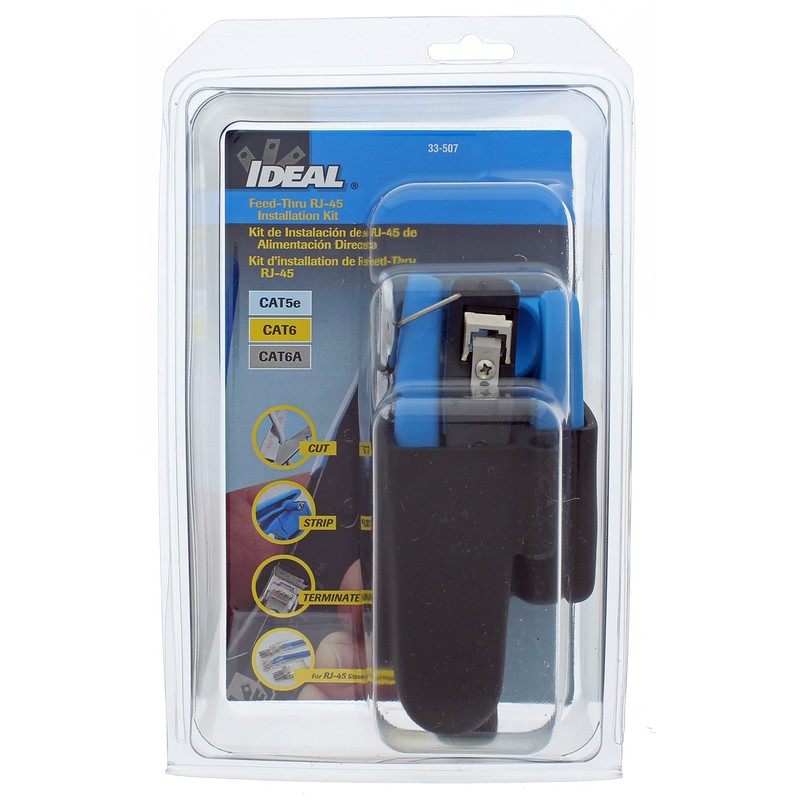 - USAGE: Tools needed by professionals to cut, strip, and crimp RJ-45 modular plugs. The kit is designed to terminate IDEAL Feed-Thru, standard and shielded RJ-45 connectors for CAT5e, CAT6 and CAT6A cables. Compatible with many non-IDEAL connectors.