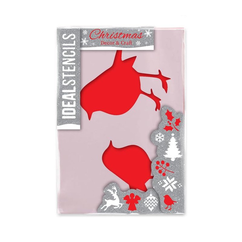 Ideal Stencils Christmas Stencil, Robins Design, Paint Boxes, Sacks, crates, Cards, and Much More... Festive Decorating Stencil, Reusable Stencil (A5 Size / 15x21cm)