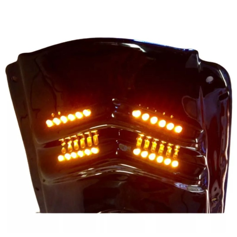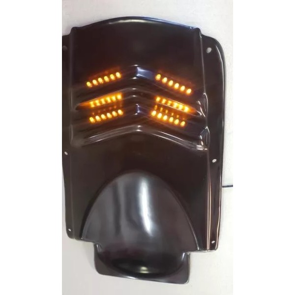 Comes with 2 rows of 6 amber led blinkers on each side, Hardware (6 plastic rivets) license plate bracket also in ABS plastic with hardware.