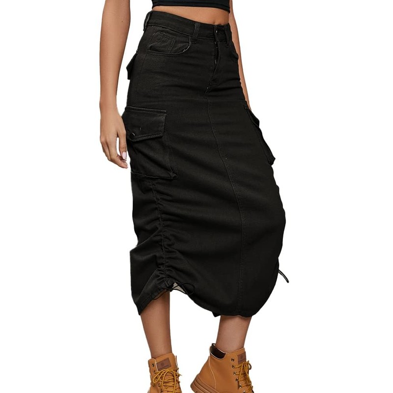 - IDEALSANXUN Womens new fashion trendy long cargo skirts high waisted midi jean skirt