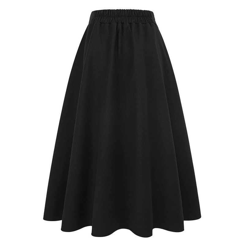 IDEALSANXUN Womens High Elastic Waist Maxi Skirt A-line Plaid Winter Warm Flare Long Skirt, Long Pure Black, Medium