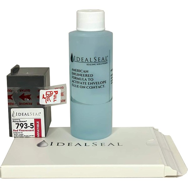• IDEALSEAL EXCLUSIVE combo pack! Contains 50 6"x4" postage meter labels, one compatible 793-5 ink cartridge, and 4 oz. Dabber bottles of Sealing Solution!