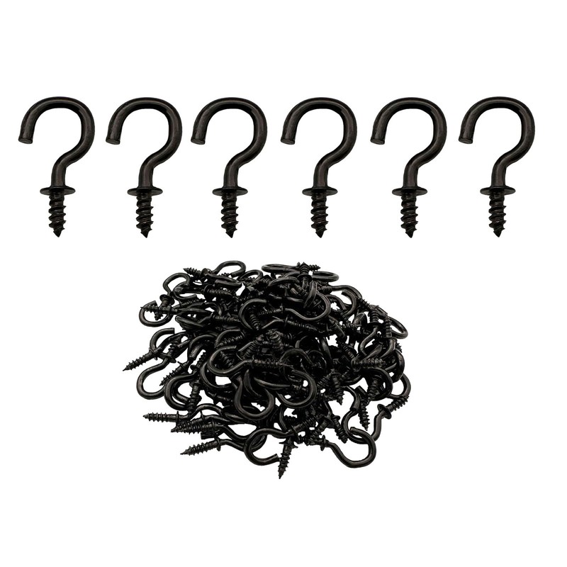IDEALSV 100 Pcs 1/2" Small Screw Hooks, Screw in Ceiling Jewelry Hooks String Lights Hook Black