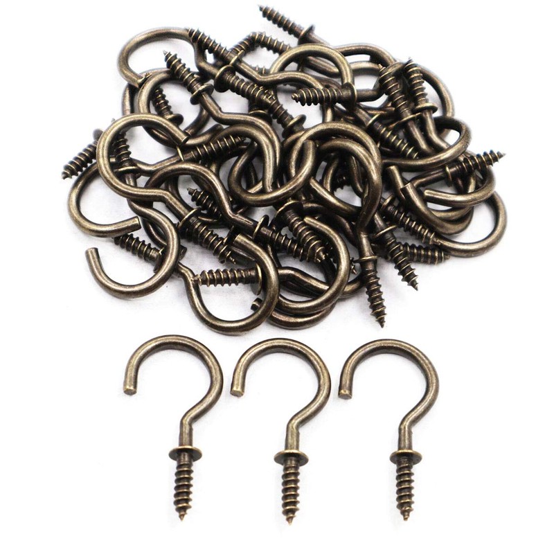 IDEALSV Antique Brass Ceiling Hooks 7/8'' Vintage Bronze Cup Hook Screw-in Light Hooks (40 Pack)