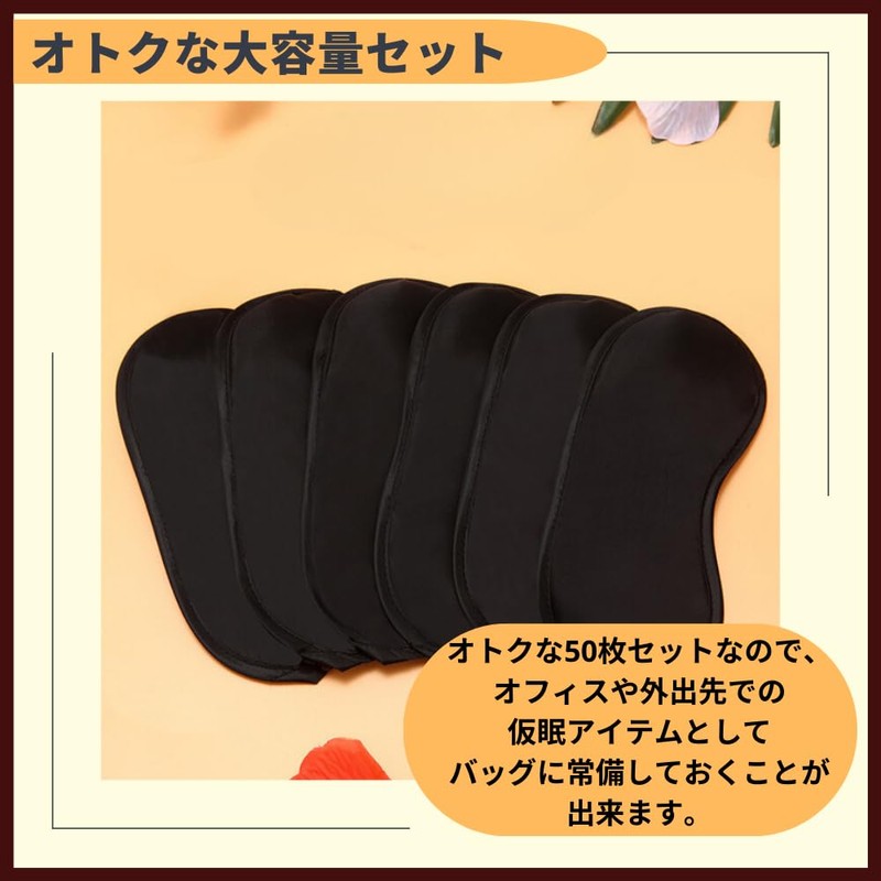 (Light blocking eye mask) The nose part has a flap so it can completely block light. (Ideal for sleeping comfort) Ideal for travel, business trips, traveling by trains or planes. The breathable fabric feels good on the skin, and it does not fall off and does not feel pressure, so you can sleep comfortably. Value Set of 50: This set of 50 large quantities makes it convenient for napping in the office or on the go. Easy to carry in your bag or disposable. Product Contents: Eye mask x 50 pcs. Size (approximate): 3.3 x 7.5 inches (8.5 x 19 cm). Color: Black. Please contact customer service through your order history.