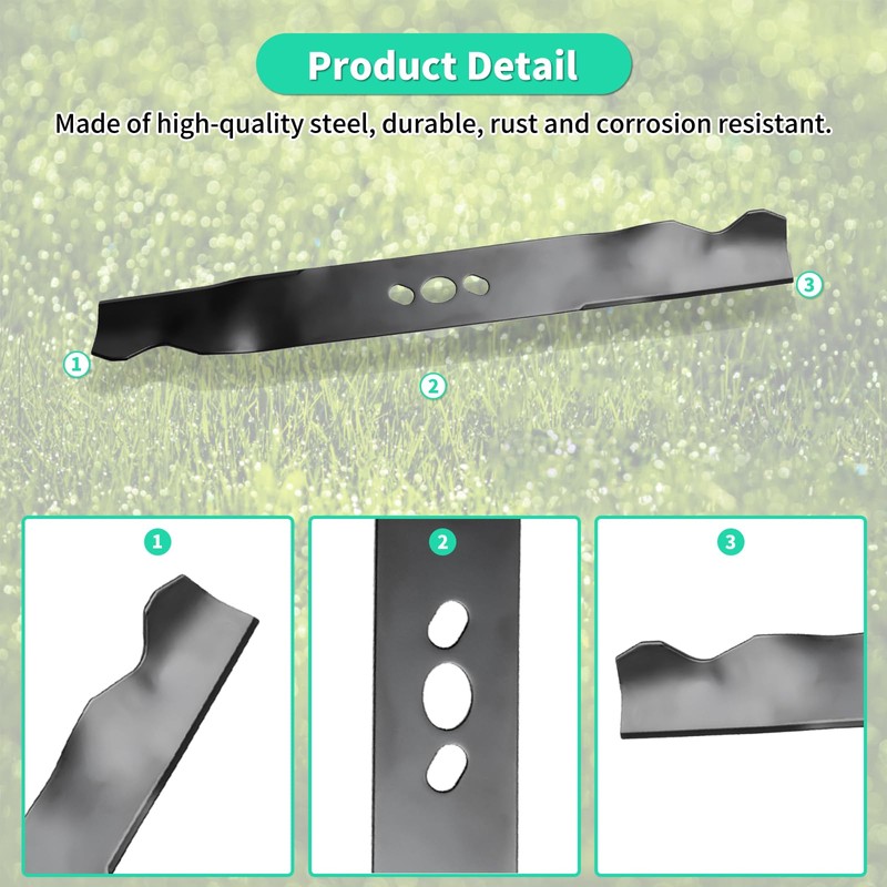 - Efficient Cutting: The blade fits for 21 inch mower deck. It provides an even, precise cut on a variety of terrains and grass types for an effortless mowing experience and improve the efficiency of the mower.
