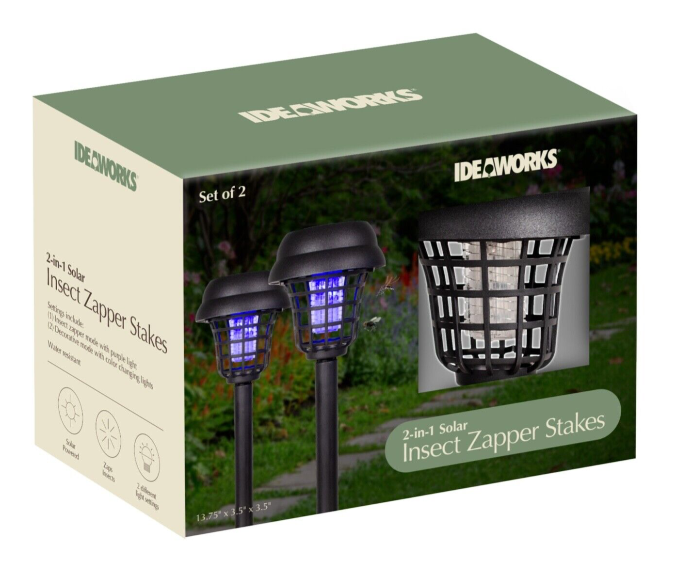 Ideaworks 2 in 1 Solar Insect Zapper with 2 light Settings Stakes Mosquito Killer (2 Pack)