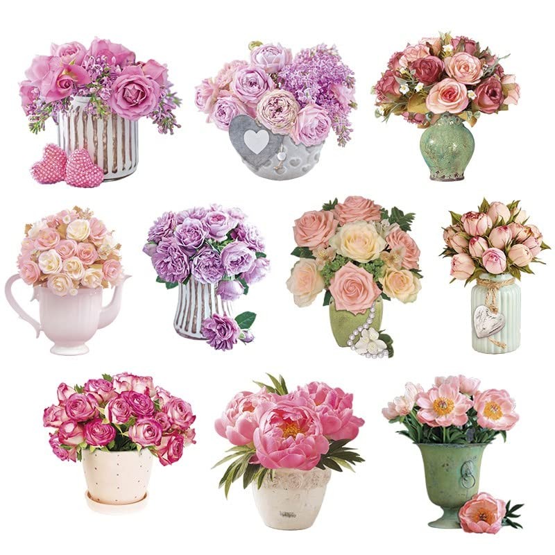 Ideen mit Herz 3D Motifs, Cut-Out, Approx. 7-10 cm, Pack of 10 | Pictures for Crafts & Decorating | Make Your Own Greeting Cards | Picture Motifs for Scrapbooking & DIY Decoration (Bouquets in Vases)