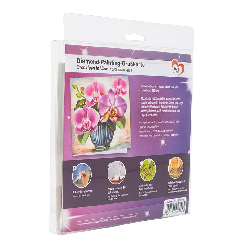 Ideen mit Herz Diamond Painting Greeting Card | 16cm x 16cm | 370gsm | Includes Envelope & Tools (Orchids in Vase)
