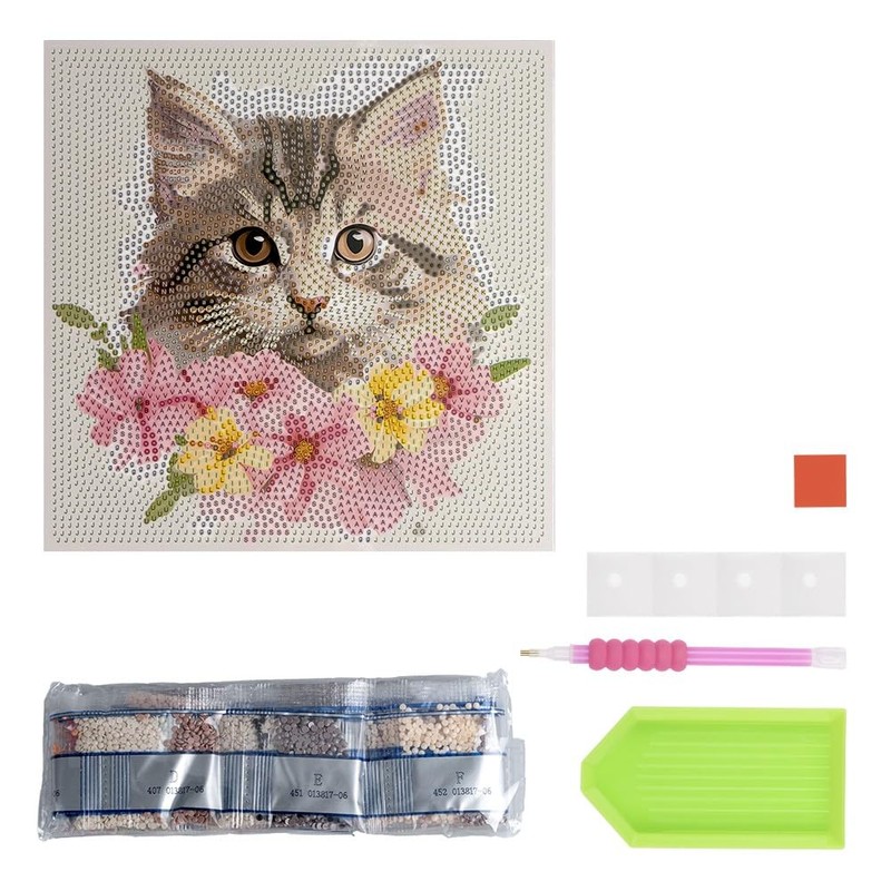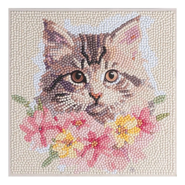 Ideen mit Herz Diamond Painting Topper, 20 cm x 20 cm, Beautiful Motifs, Includes Accessories, for Wooden Box or Gift Box (Cat with Flowers)